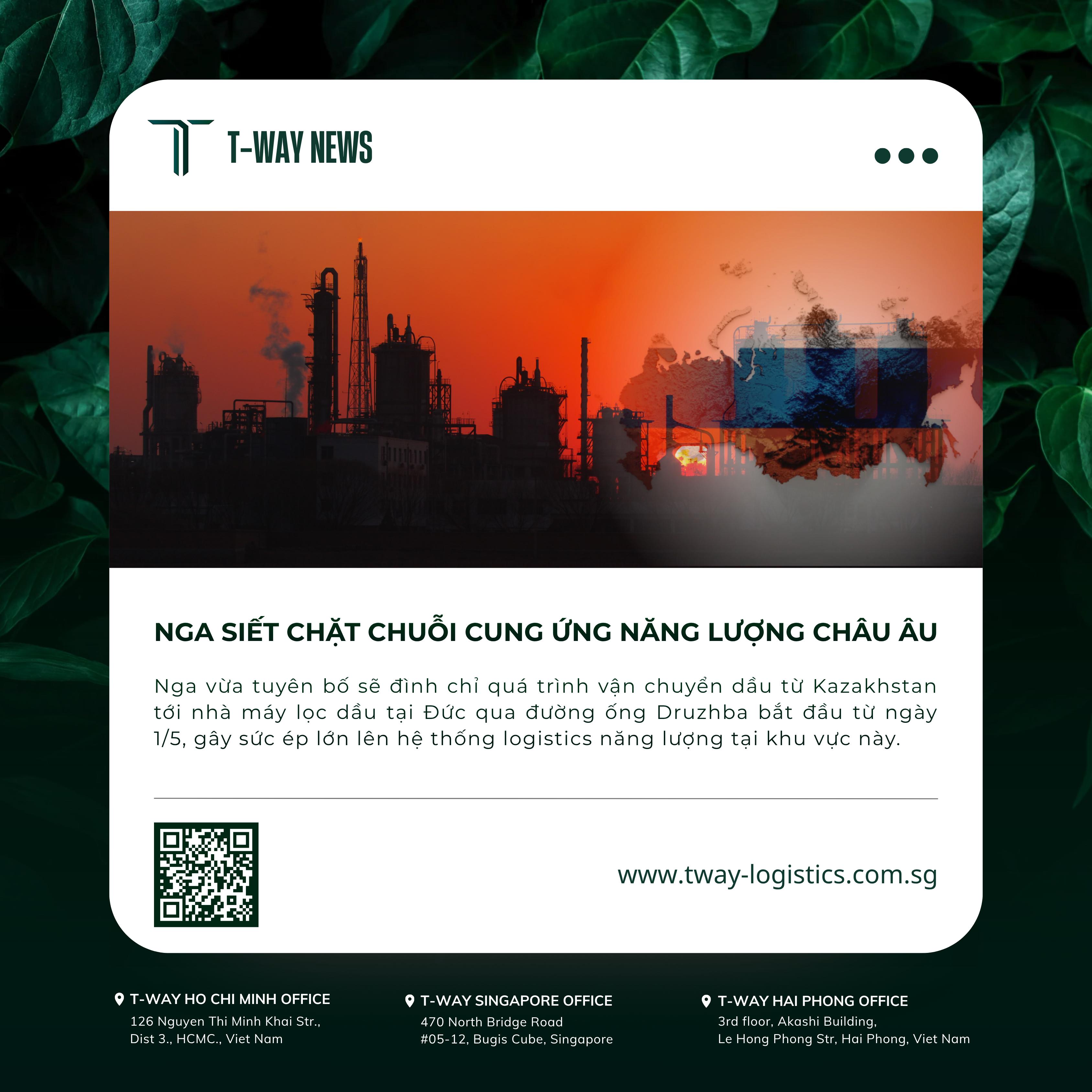 Russia has announced it will suspend the transit of oil from Kazakhstan to German refineries via the Druzhba pipeline starting May 1st. This move exerts significant pressure on the region's energy logistics infrastructure.